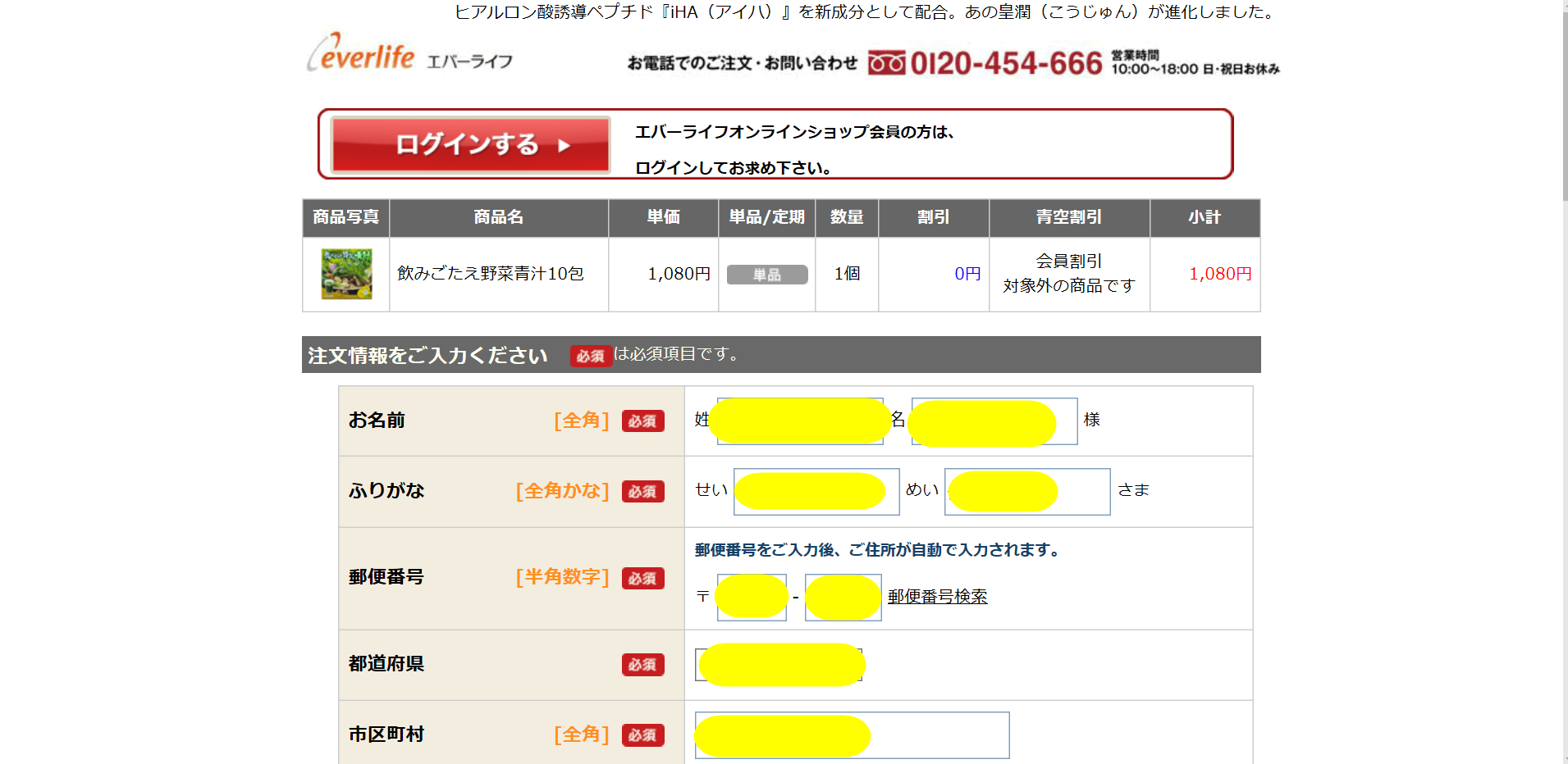 すると、画面が切り替わり、注文情報を入力するページになりますよ。
